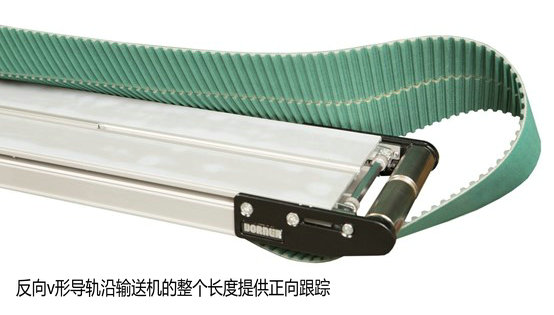 反向v形導軌沿輸送機(jī)的(de)整個(gè)長(cháng)度提供正向跟蹤